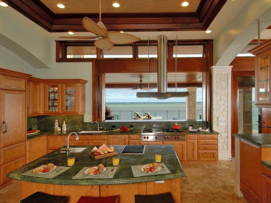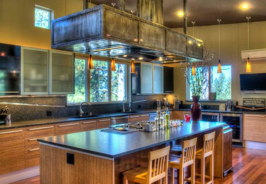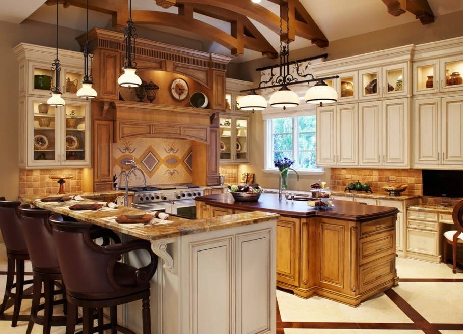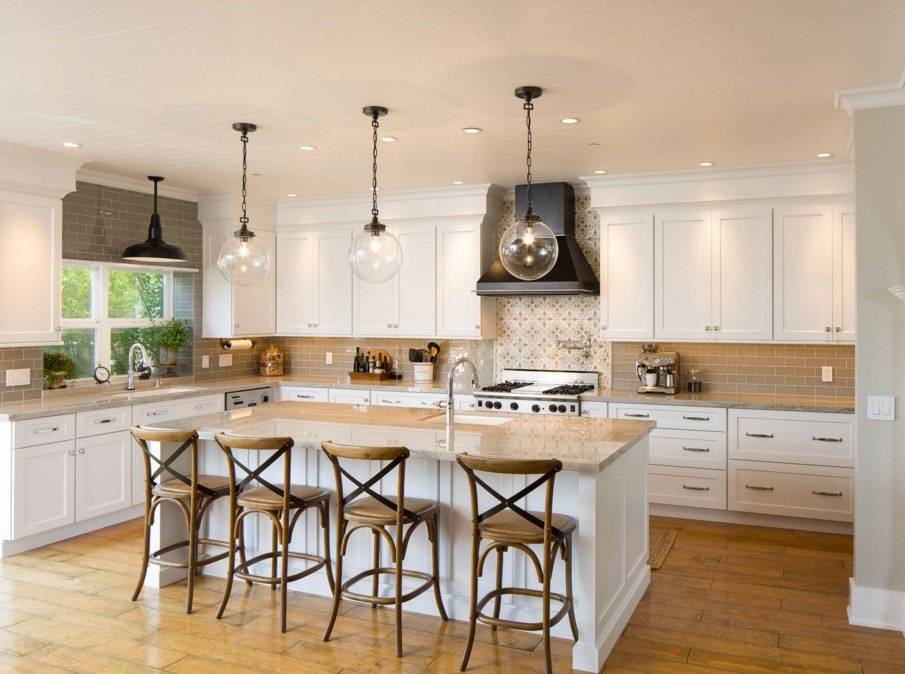 Дизайнеры рекомендуют устанавливать люстры в просторных кухнях в комбинации с другими видами светильников.