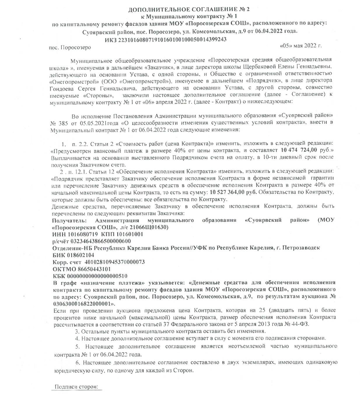 Дополнительное соглашение об изменении размера аванса выглядит так: