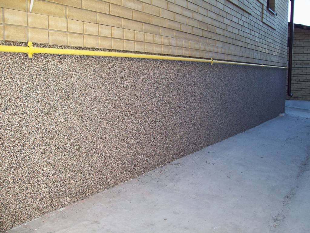 Состоит из природных вяжущих, пластификаторов и наполнителя из природного камня. Для имитации разных видов природного камня используются наполнитель мелкой или средней фракции. Готовая поверхность очень прочная, защищает от промокания и механического разрушения цоколя.