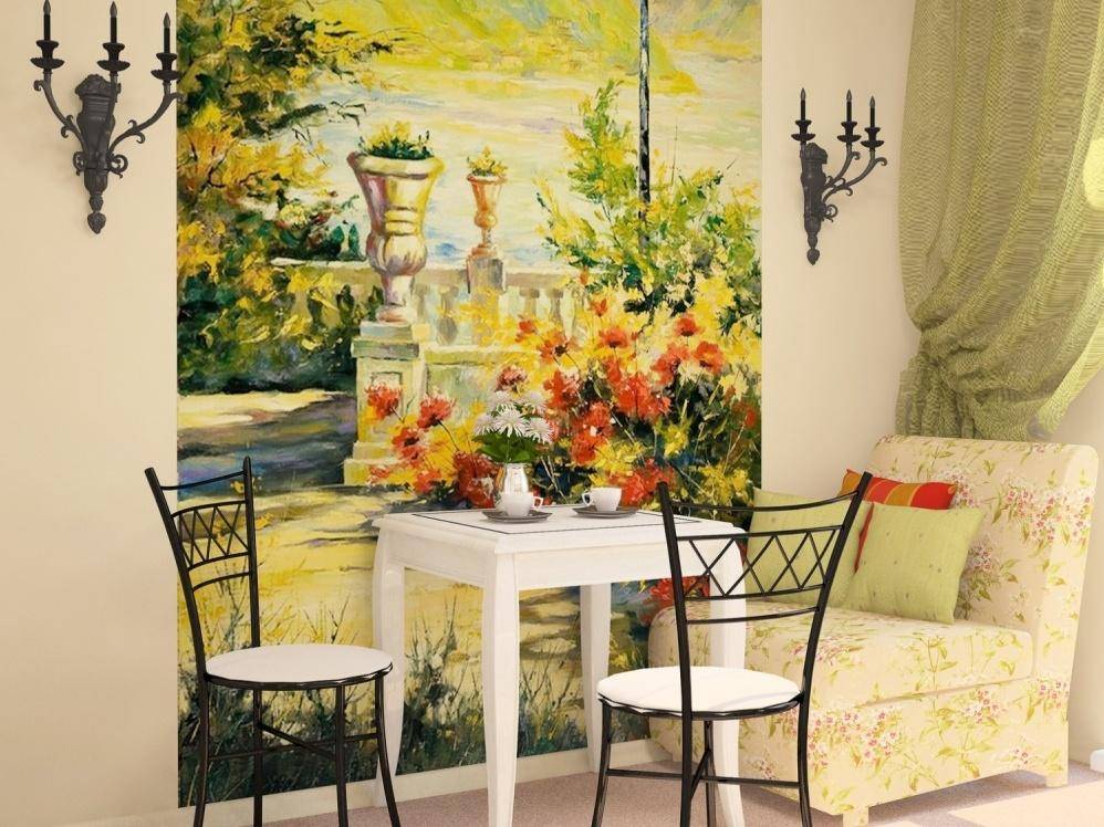Важно выбрать изображение, которое не будет подавлять своими размерами. Например: цветочные и фруктовые композиции, городские и сельские пейзажи, абстракции.