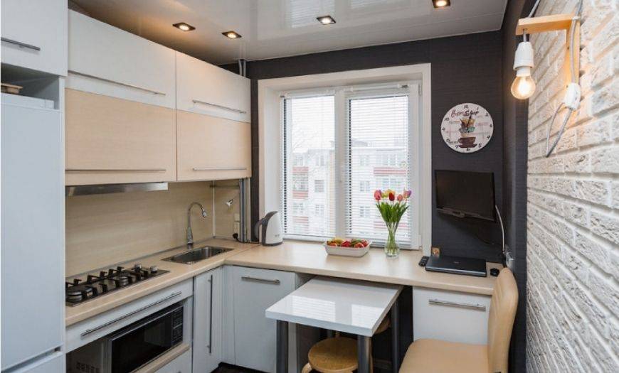 Свет в кухне в хрущевке тоже очень важен – он во многом определяет визуальное восприятие пространства. При ремонте его продумывают сразу же – темные помещения выглядят мрачными и маленькими.