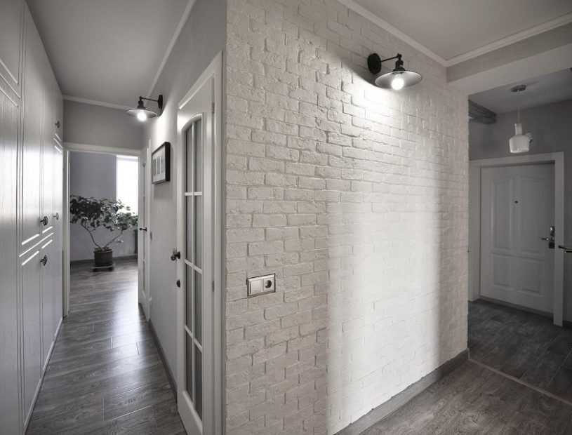 При выборе материалов, имитирующих кирпичную кладку, можно использовать цветной или белый кирпич в прихожей, при этом необходимо учитывать технологию их применения и фиксации.