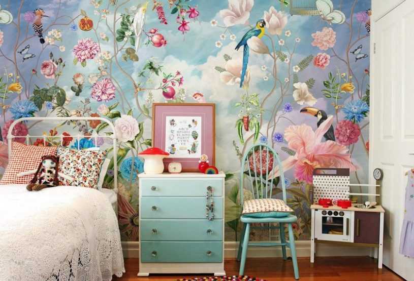 Подходящей тематикой изображений на фотообоях для девочек могут стать: