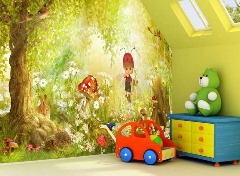 Лучшие примеры использования детских обоев для девочек в желтом и зеленом