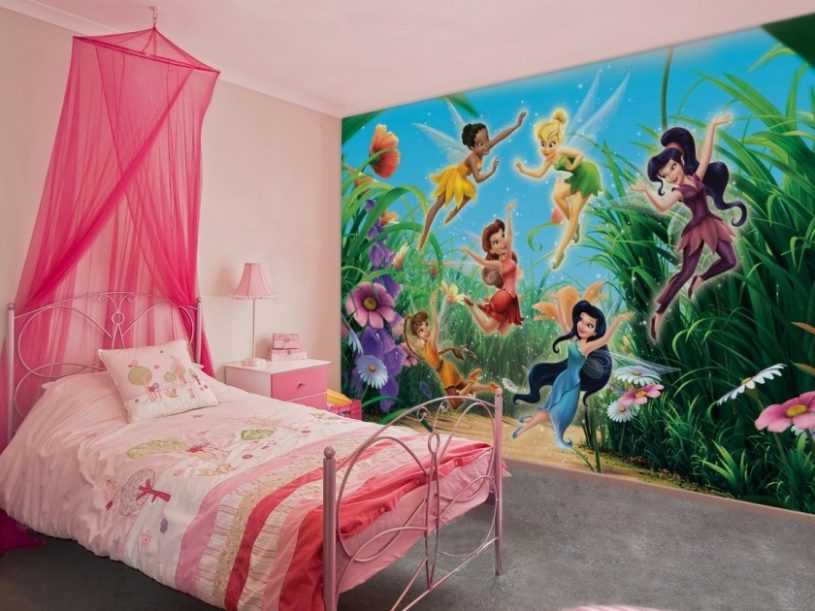 Комнату принцессы можно оформить обоями с изображением лесных фей, волшебниц. Это стилистическое решение прекрасно подходит для девочек, которым нравится носить красивые платья, завивать локоны и модничать.
