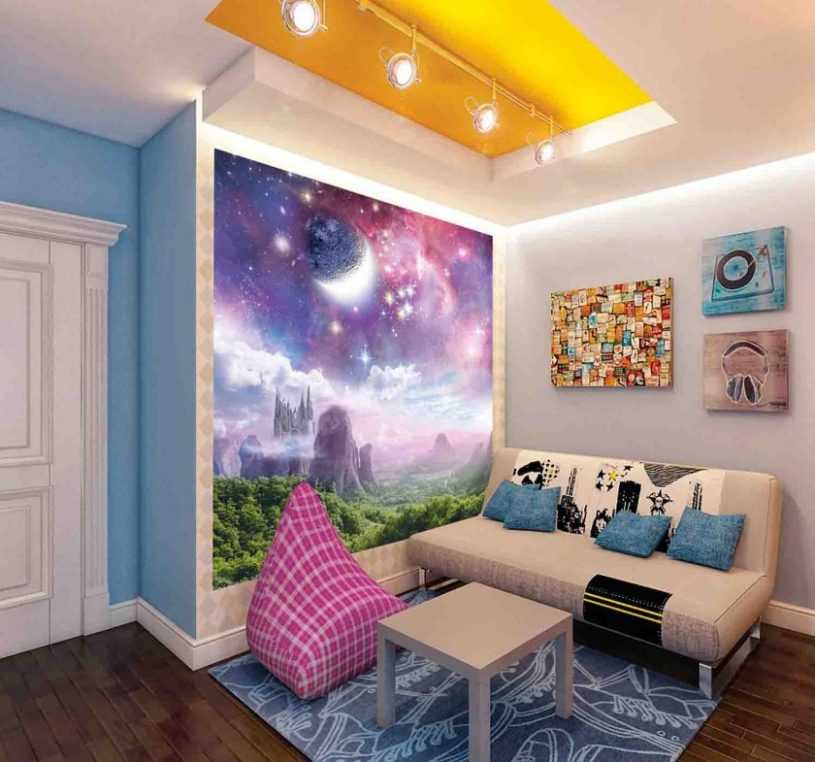Фотообои – прекрасная альтернатива сложной росписи стен. Это экономичный и простой способ придать комнате необычный яркий облик. Выбор сюжетов и расцветок огромен. Если рисунок захочется поменять, сделать это не составит большого труда.