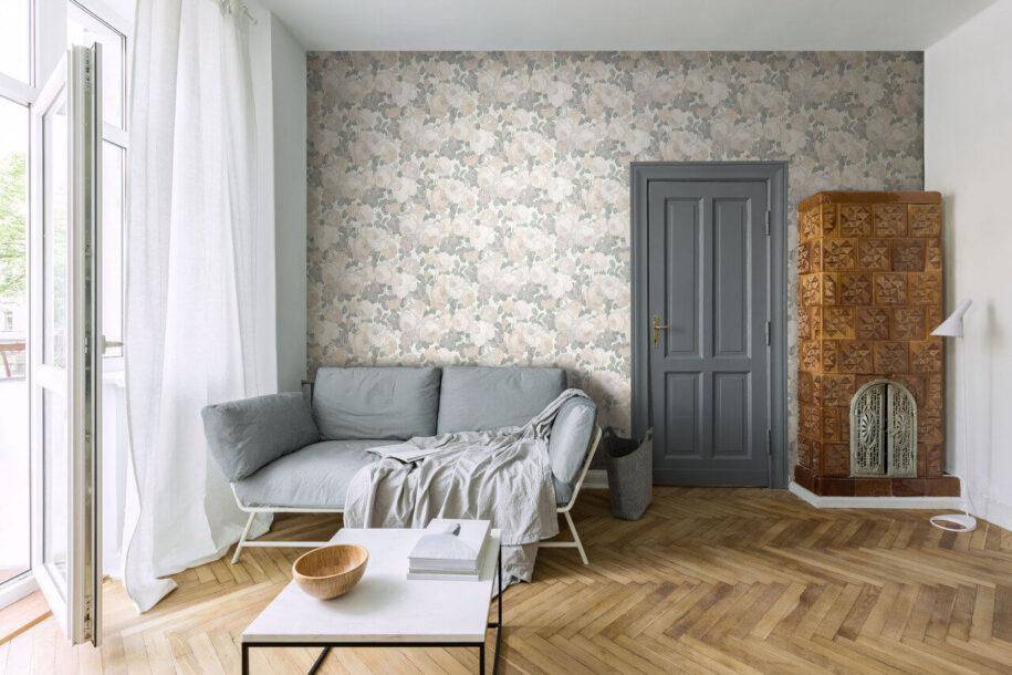 - Обои с незамысловатыми узорами. Они довольно похожи на обои в классическом стиле. Основное отличие заключается в цветах – стиль модерн предполагает светлые непринужденные тона, в то время как в классическом стиле наиболее часто можно увидеть темные оттенки.