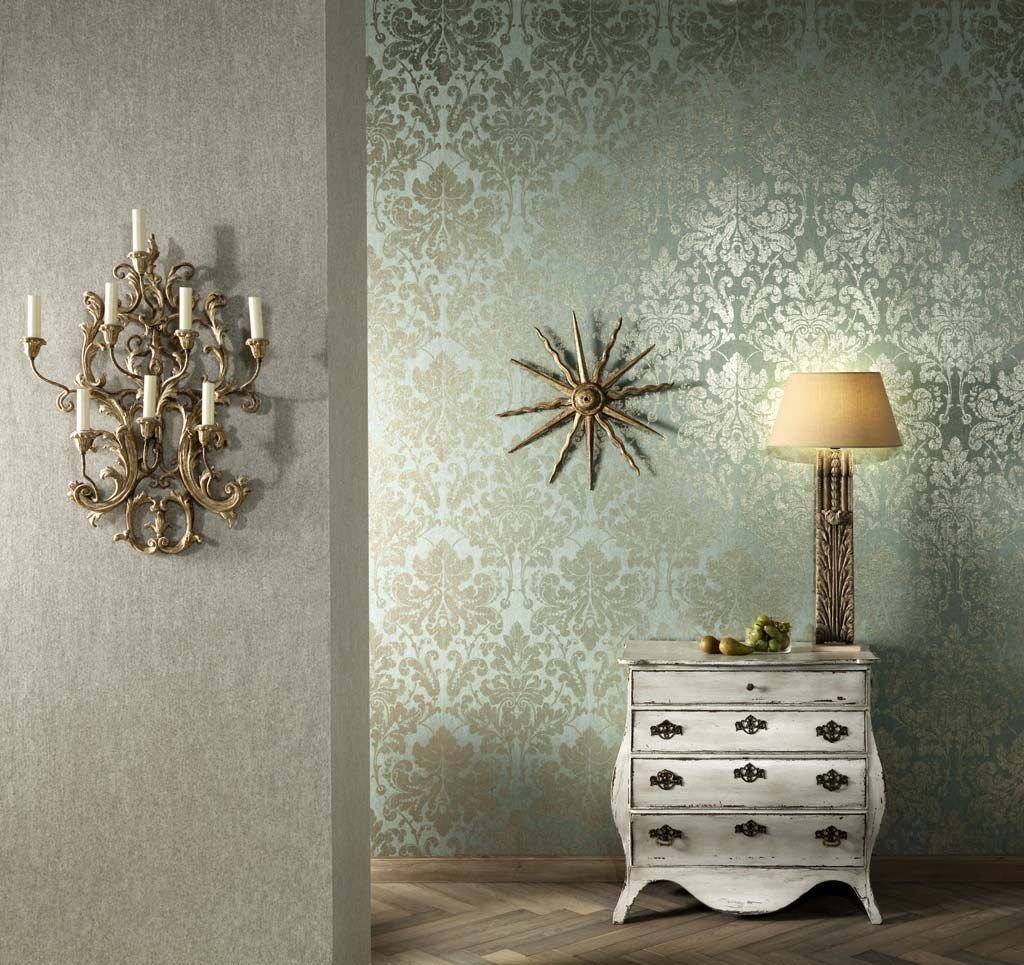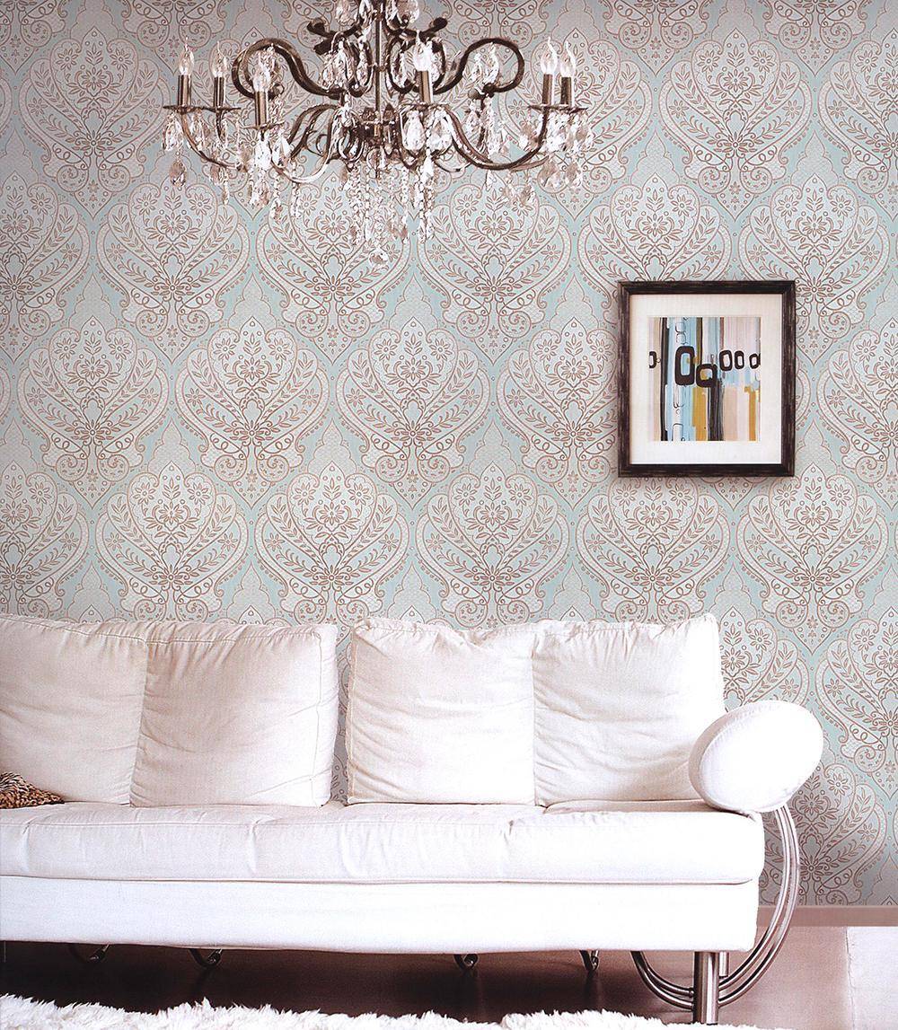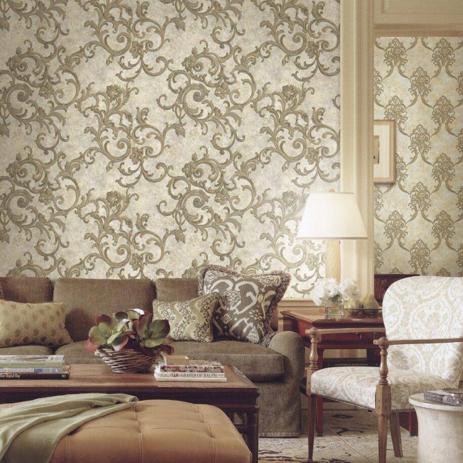 - Классический стиль подойдет для тех, кому нравятся спокойные, но при этом роскошные интерьеры. Здесь будут уместны итальянские обои пастельных тонов с витиеватыми золотистыми узорами.