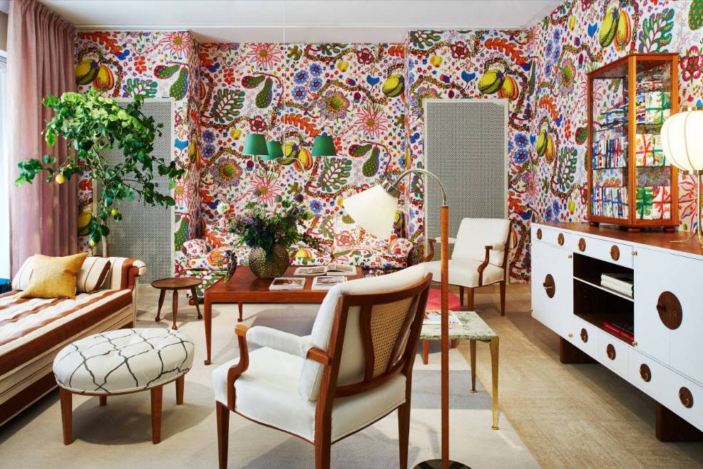 Сочетание цвета и рисунка обоев с разными стилями интерьера: