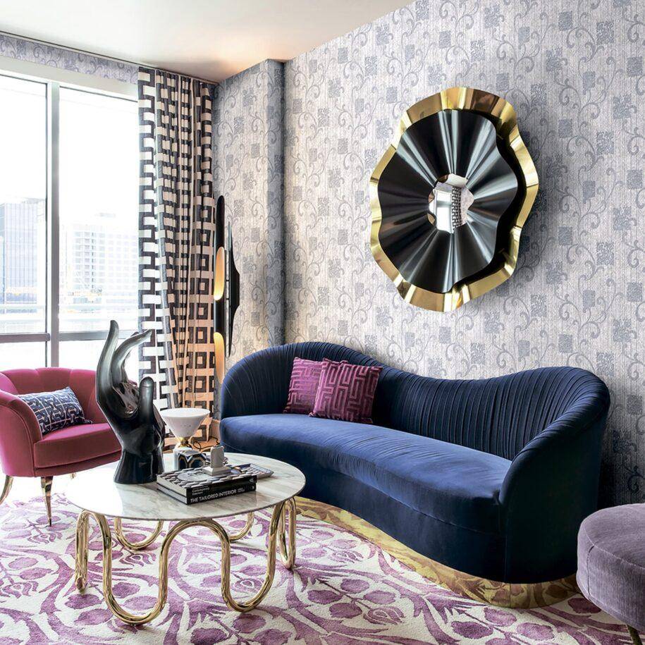 Дизайнеры любят экспериментировать и выбирать для гостиной яркие материалы насыщенного цвета с сочным рисунком