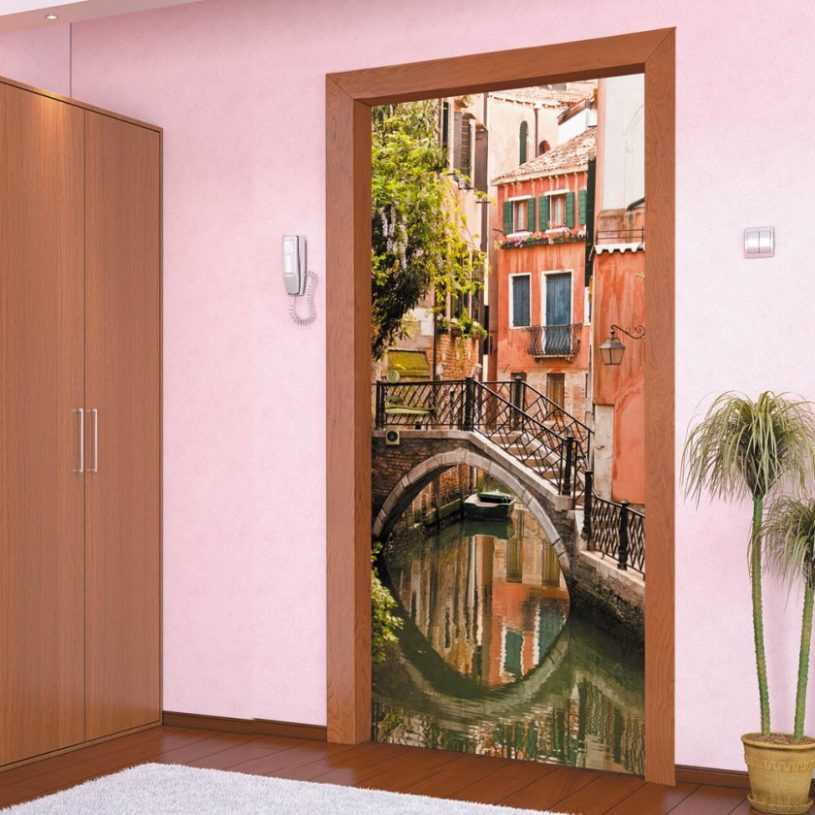 Самоклейка является ещё одним хорошим вариантом обновки двери, так как совмещает в себе относительно дешёвую стоимость и достойную красоту. В её состав входит плотная плёнка. Благодаря этому она практически не рвётся, не лопается, её можно протереть влажной салфеткой, и при этом достаточно сложно испортить.