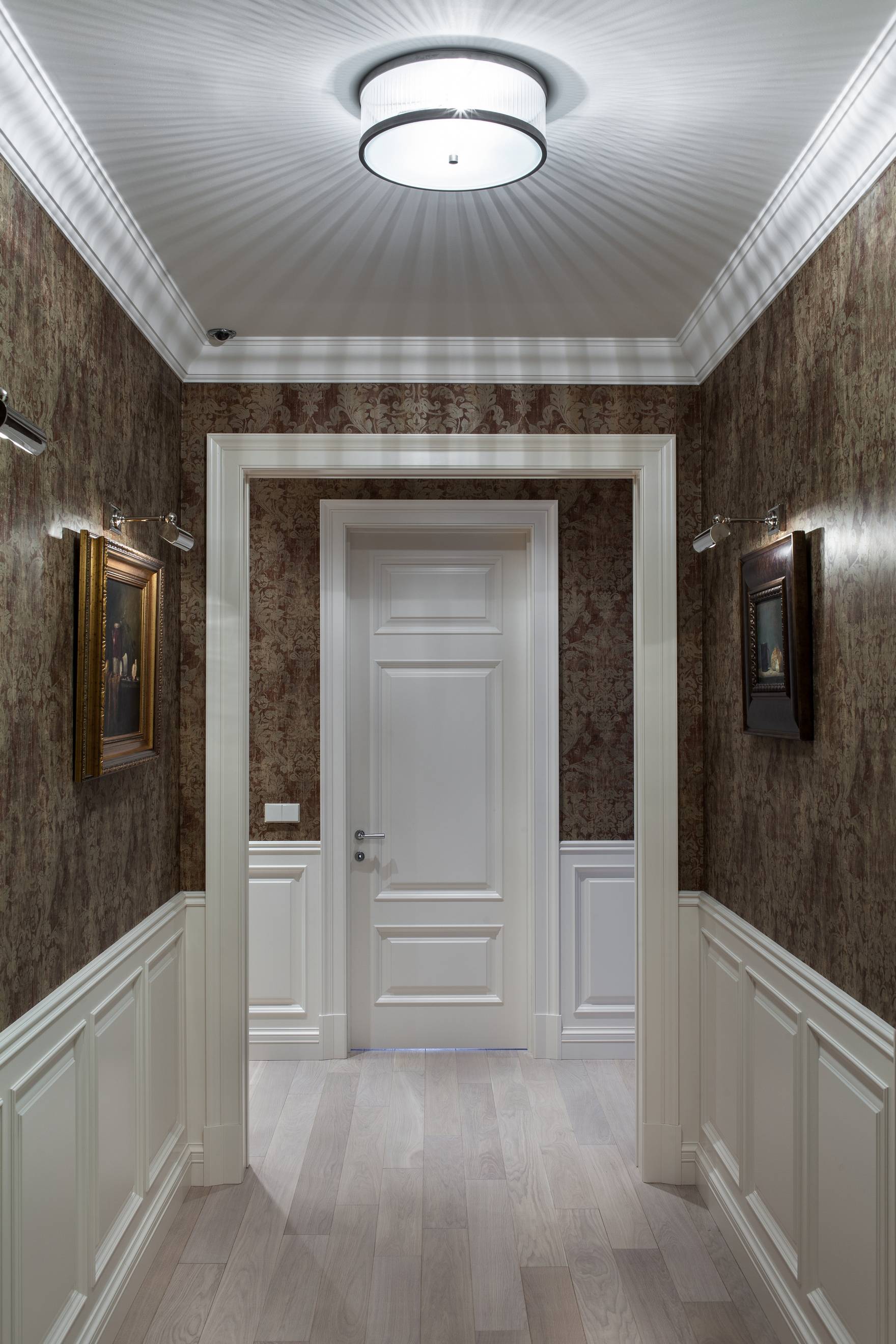 Выбор цвета, цветовой гаммы и рисунка обоев для коридора с темными дверями