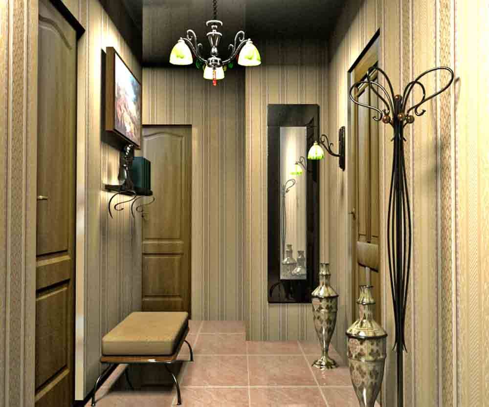 Если говорить о цветах вообще, то использовать можно любые. Даже темные. Но они хорошо смотрятся в просторных помещениях с обилием света. И одно условие: пестроты и мелкого рисунка лучше избегать. Они делают помещение еще мельче. Если ваш коридор маленький и узкий, то придется вам выбирать из светлых, нейтральных тонов, причем с неярко выраженным рисунком.