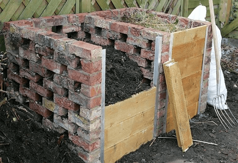 Это наиболее затратный по прилагаемым усилиям и вложенным средствам способ сооружения компостной ямы. Такое сооружение следует размещать там, где куча точно не будет создавать никаких трудностей, так как перенести ее в другое место будет невозможно.