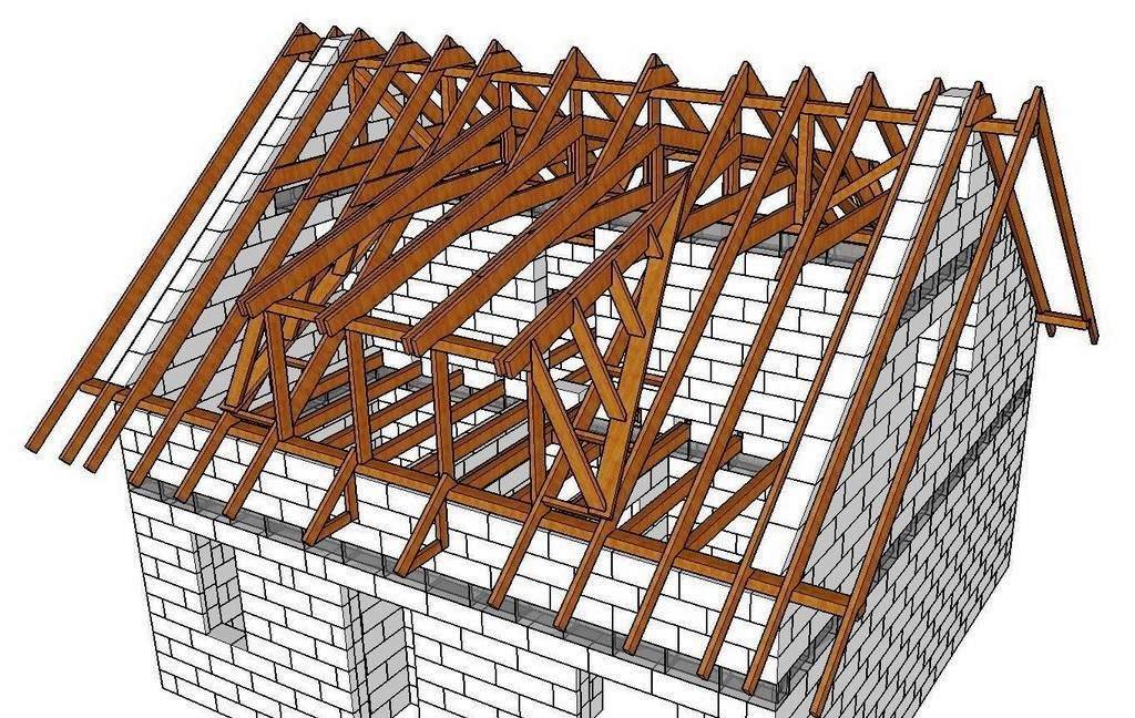 Крышам с двумя и более скатами нужны промежуточные опоры под конек, если не считать совсем уж небольшие домики, стяжки между стропилами и другие усиливающие элементы, которые не позволяют кровле просто сложиться. Такую стропильную систему обычно закрывают потолком просто ради эстетики, если, конечно, не планируют оформить дом в рустикальном или похожем грубом «природном» стиле.