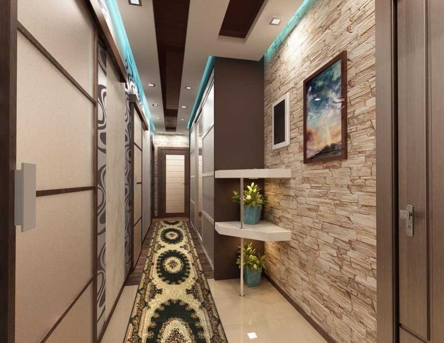 Существуют различные идеи и решения для интерьера длинного коридора и современного дизайна. Мебель нужно размещать с учетом того, что пространство для прохода должно быть не менее 80 см.