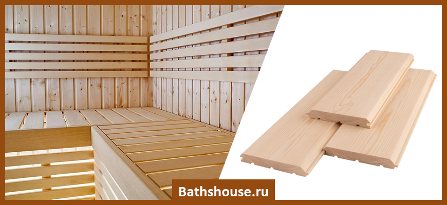 Для обшивки сауны нет ограничений в выборе пород деревьев, за исключением сосны. Сырье меньше подвержено влаге и поэтому служит дольше. Способ монтажа ‒ вертикальный, горизонтальный.