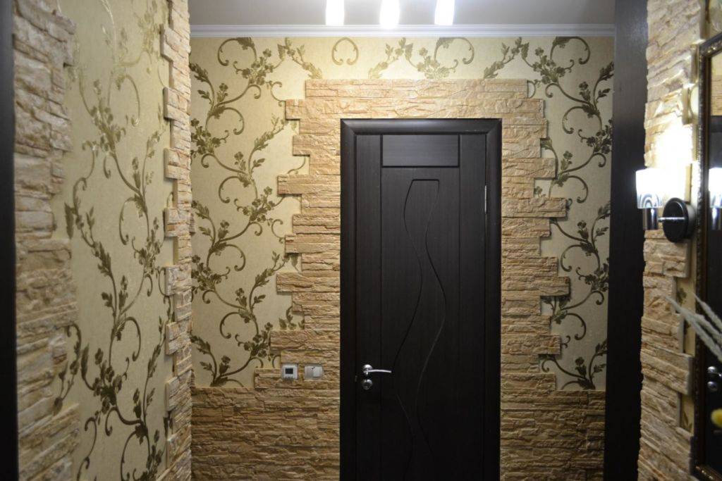 - декоративная каменная отделка интересно смотрится на стыке кухни и прихожей, можно скомбинировать их с бумажными или виниловыми обоями светлых тонов;
