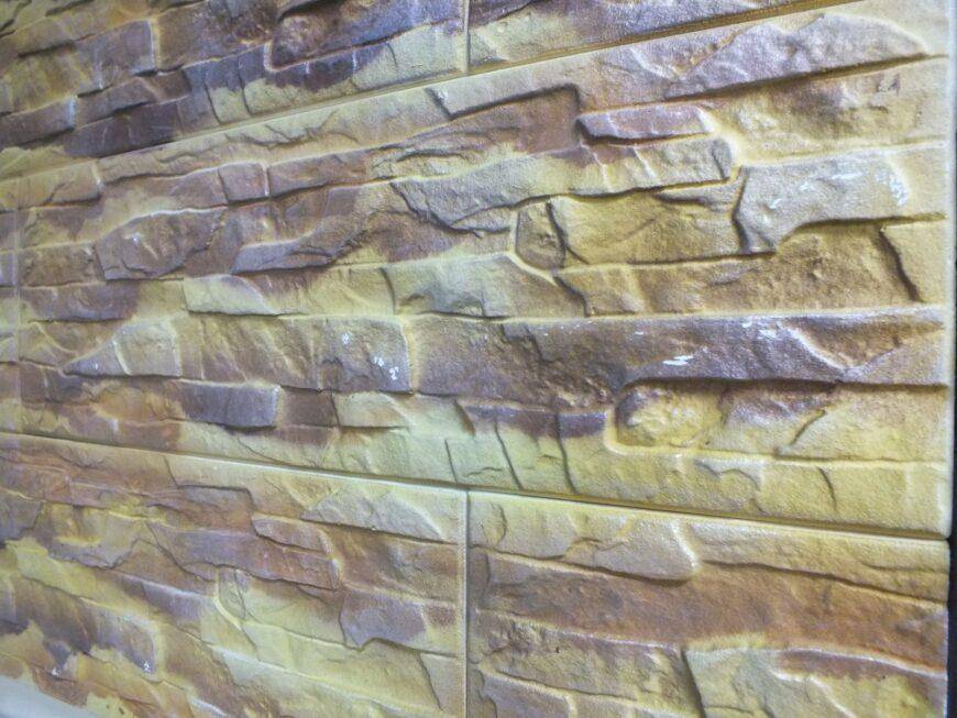 Имеет невысокую стоимость, что играет немаловажную роль при выборе материала отделки. Так же он очень легкий, при производстве добавляются красящие пигменты, что позволяет копировать внешне натуральный камень или выбрать абсолютно неожиданный цвет.