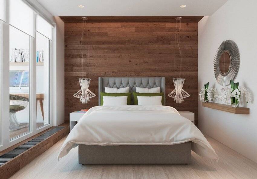 Достоинства и недостатки дизайна спальни с ламинатом на стене