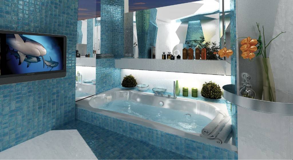 При помощи коллекционной плитки можно создать в ванной особую атмосферу и превратить ее, к примеру, в морской берег. Или воссоздать элемент любой страны, от какой-нибудь африканской республики до высококультурной Франции.