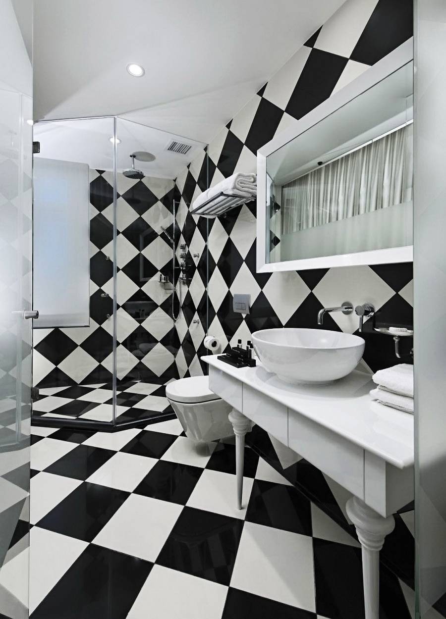 Это наименее рискованный, а для маленьких ванных комнат и единственно верный вариант отделки. Разные стены мы можем отделывать разной плиткой, но в рамках одной используем строго 1 вид.