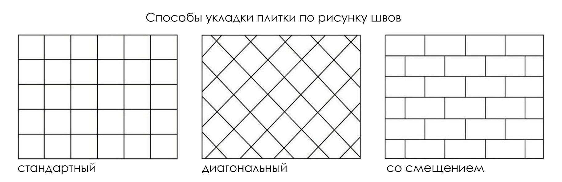 - шахматная — этот метод укладки выполняется по способу шов в шов. Применяется однотонная плитка разных цветов;
