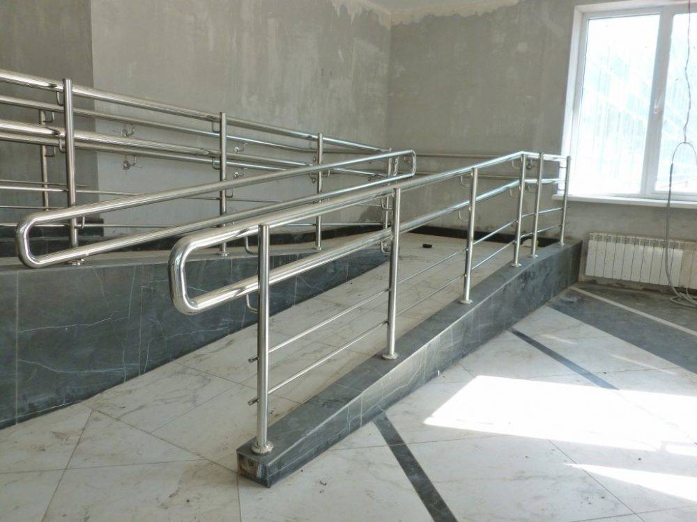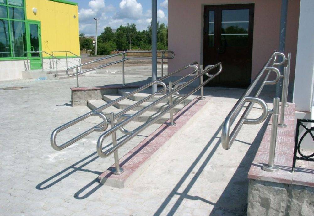 Важным конструктивным элементом пандусов являются поручни. Они позволяют группам населения с проблемами опорно-двигательного аппарата перемещаться без посторонней помощи, в отличие от устройств доступности, где поручни не предусмотрены, и инвалиду нужна поддержка окружающих. Наиболее популярны поручни из нержавеющей стали.