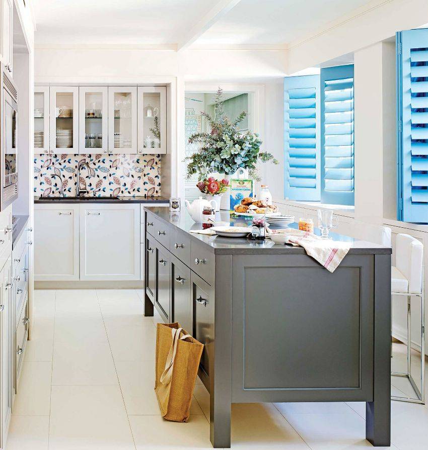 Для серой кухни отлично подойдут яркие цветовые решения, мозаика, насыщенные оттенки. Белая отделка рабочей стены будет тоже выгодно смотреться, но только при условии использования легко моющихся материалов (плитки, стекла).