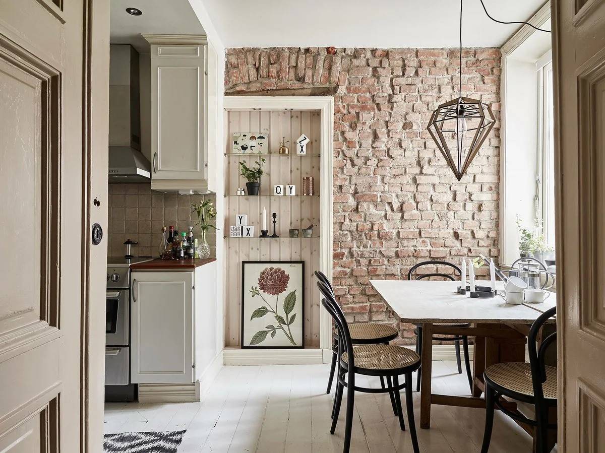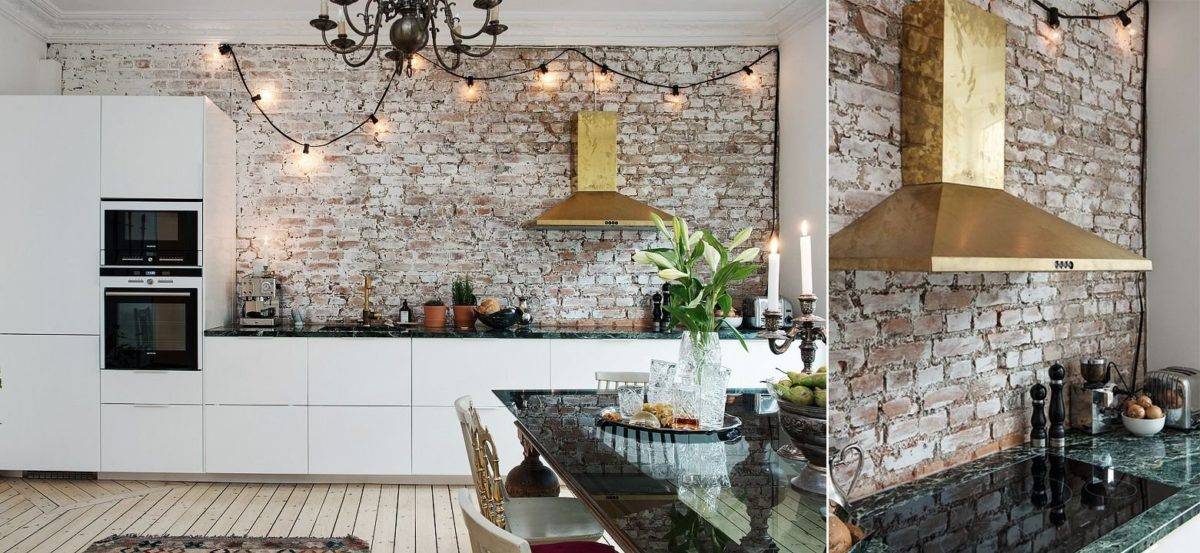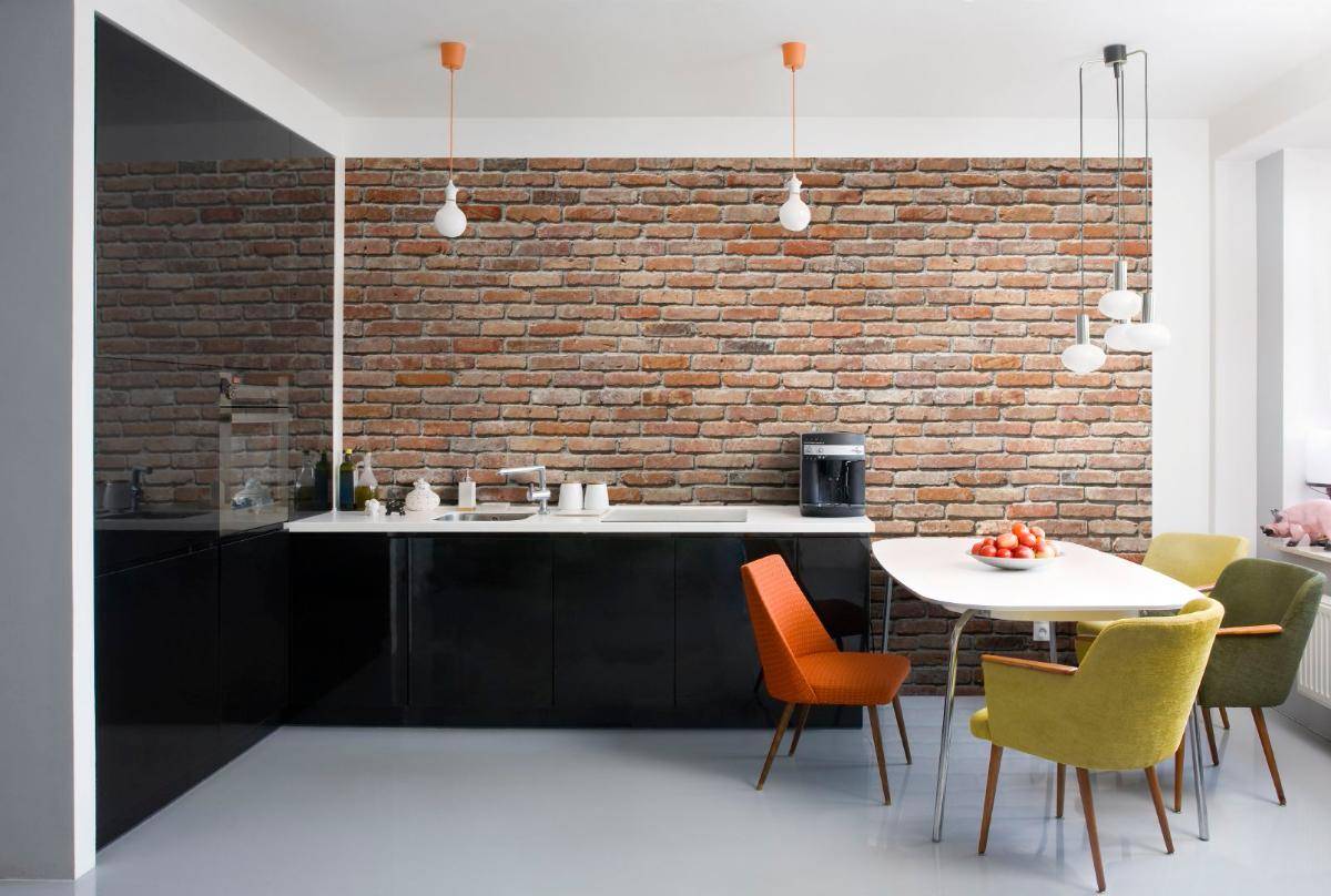 Белый кирпич — для романтических интерьеров, серый — для изысканных кухонь, а красный с оранжевым — для брутальной обстановки в стиле лофт. Необязательно оформлять стену в одном цвете — можно комбинировать кирпичики разных оттенков.