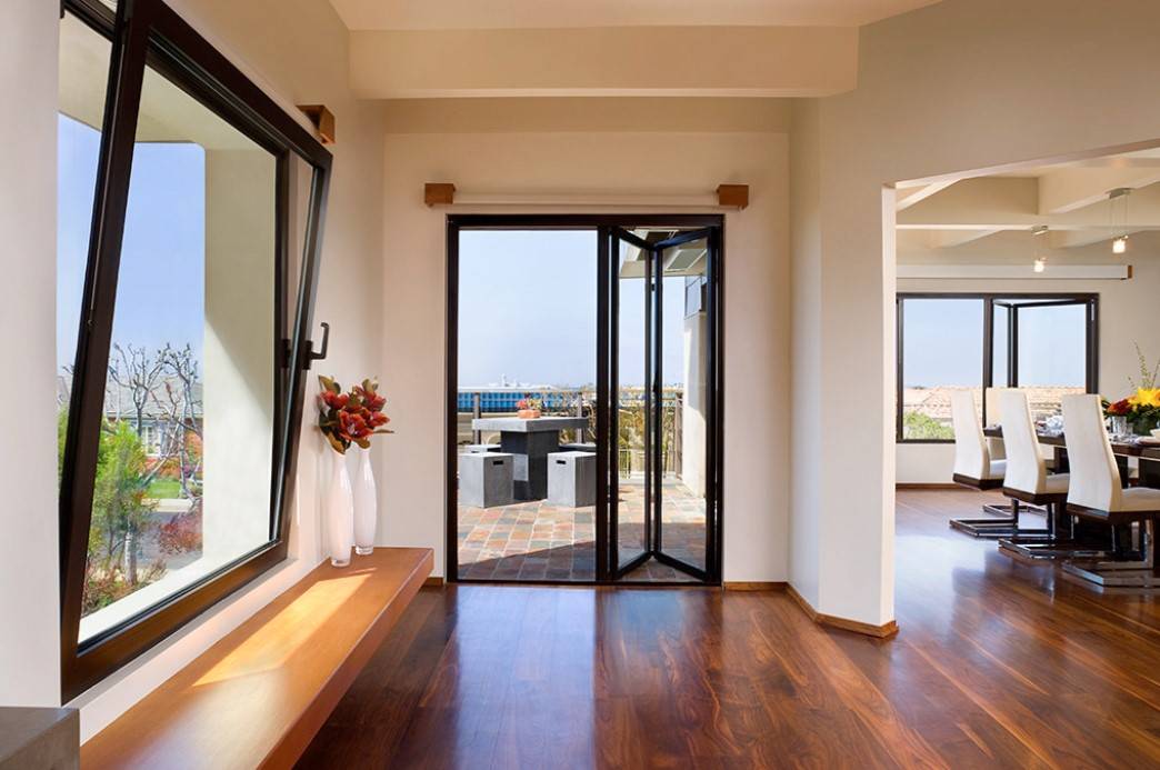Также отсутствует чрезмерная нагрузка на несущие конструкции здания. Как правило, алюминий применяется для монтажа большого панорамного окна лоджии, террасы и балкона.