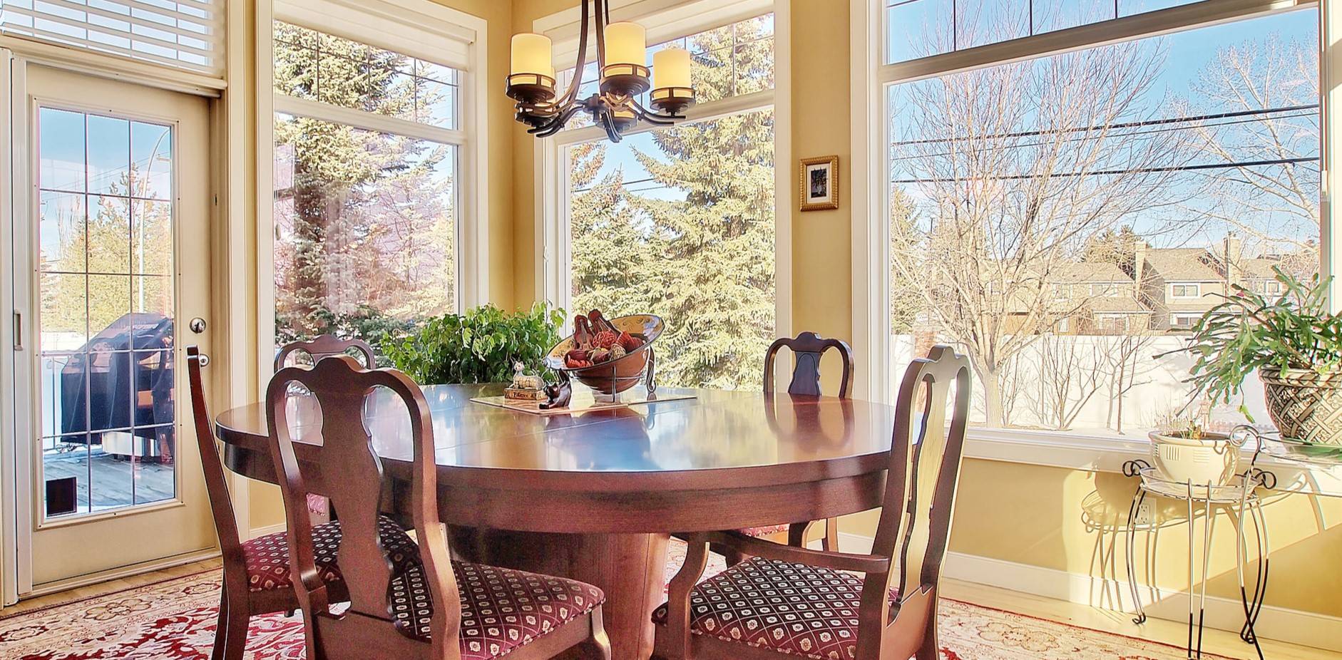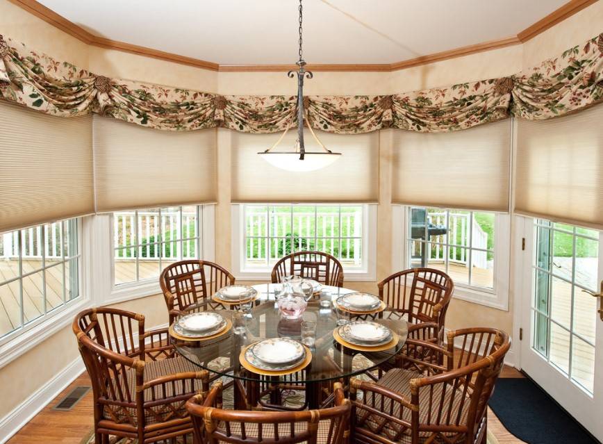 В частном доме при помощи панорамного остекления выделяется обеденная зона на свежем воздухе. Окна позволят отделить эту зону от места для приготовления пищи. Часто французские окна на кухне позволяют сформировать доступ к садовому участку. Это позволяет в кратчайшие сроки принести к столу различные виды зелени и овощи.