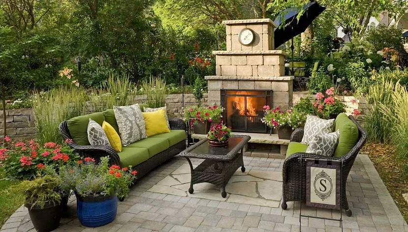 Одно из современных дизайнерских инноваций – проектировать патио вместе с уличным камином или костром. Первый объект хоть и дорогостоящий, тем не менее выполняет двойную функцию. Если его пристроить к стене дома, то он будет обогревать место для отдыха на улице и стену в доме. Костер размещают по центру площадки. А вокруг него расставляют мебель и декоративные украшения. Круглое патио подходит для создания места отдыха с центральным очагом или костром.