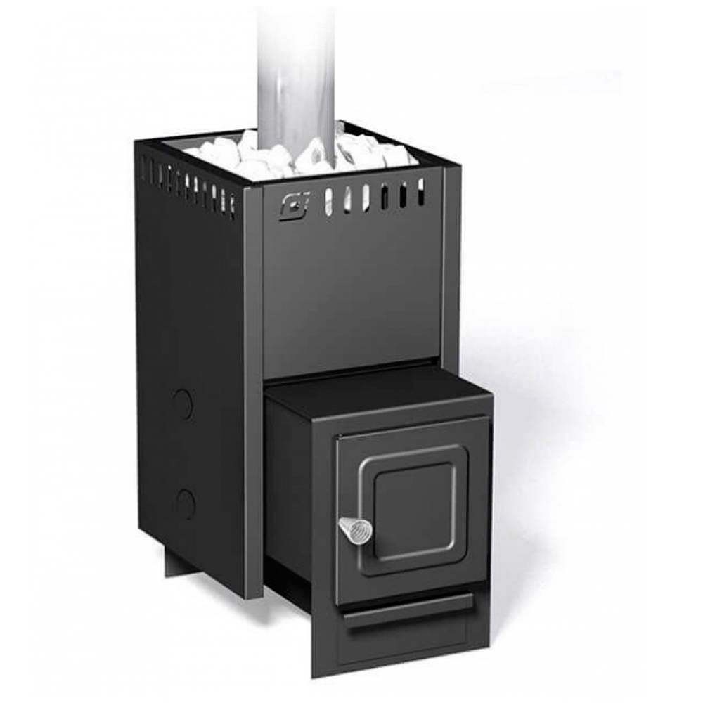 Универсальная пристенная банная печь, предназначенная для работы в банях с объемом парилки до 24 кубометров. Тепловая мощность агрегата составляет 24 кВт. Материал топки и корпуса – сталь толщиной до 6 мм. Дверца отделана стеклом.