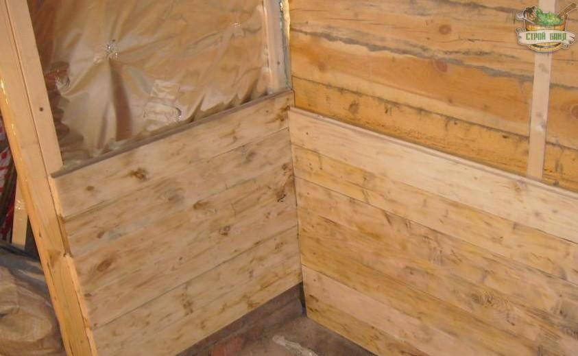 - Последним шагом будет монтаж обрешетки по дощатой перегородке и обшивка ее вагонкой, такой же, которую вы используете для основных стен.