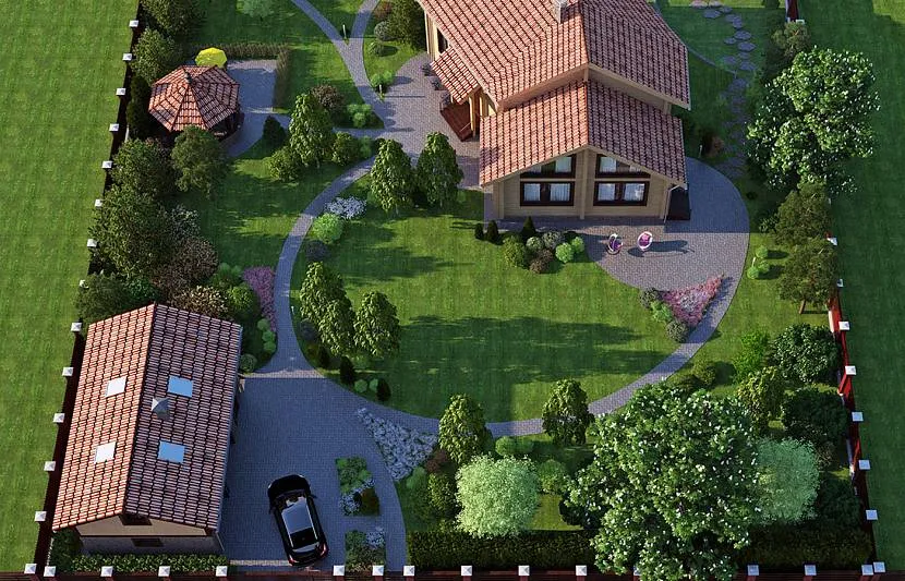 Тем, у кого есть машина, понадобится гараж, его лучше делать недалеко от калитки. В случае если гараж делать в глубине участка, придется потратить драгоценное место на прокладывание дороги к нему.