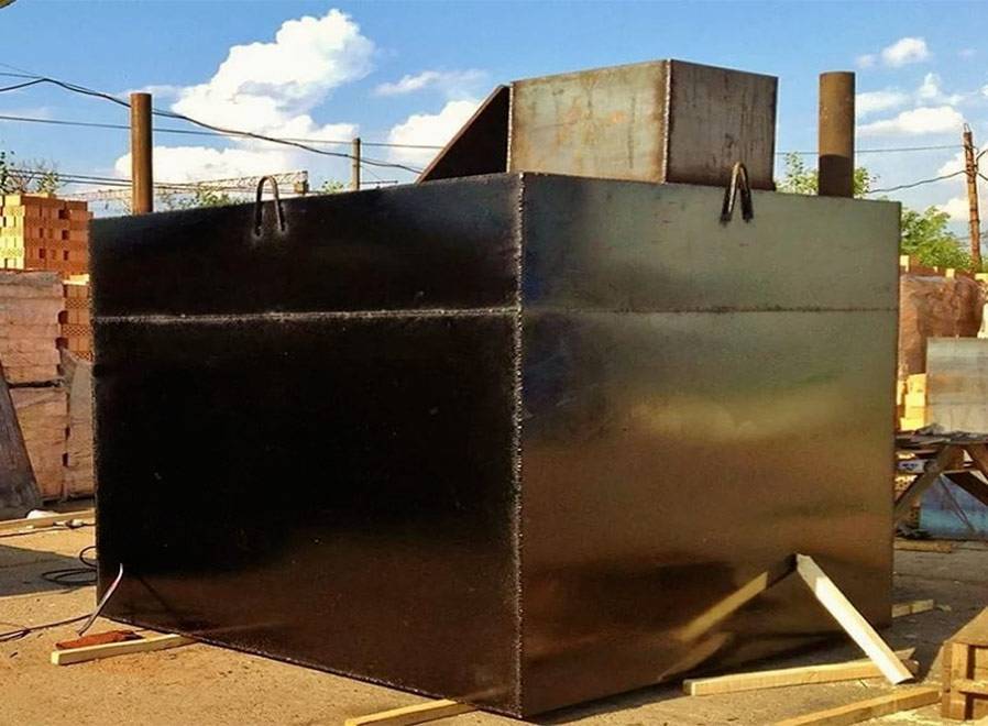 Конструктивное устройство кессонов из металла выглядит следующим образом: они представляют собой герметичную камеру, сваренную из листов. Качество сварных швов должно быть безупречным, в противном случае существенно сократятся сроки полезной эксплуатации кессона. Листы для сооружения конструкции применяются с минимальной толщиной от 3-х миллиметров. Но лучше всего брать листы с большими показателями толщины — такая камера прослужит дольше.