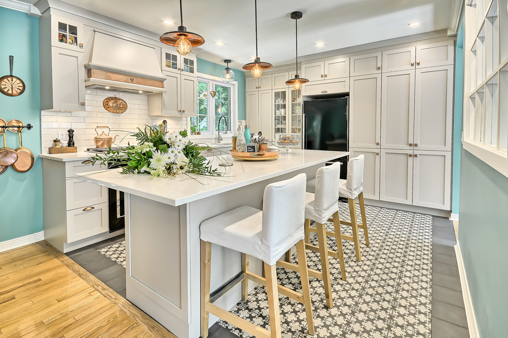 В таком современном доме в стиле кантри в сочетании с классическими белыми блоками будет царить легкое ощущение, которое удобно сочетается с разнообразными предметами интерьера. Будьте предприимчивы с кухонным полом.