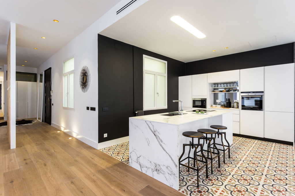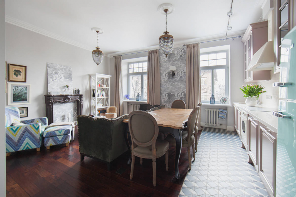 Классический керамогранит подходит ко всем стилям кухни. Он отлично вписывается в часто используемые помещения, которые подвержены максимальному износу.