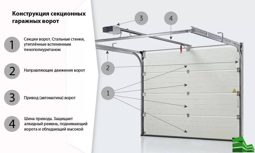 Основными габаритами гаража, которые необходимо учесть для установки секционных ворот, являются: