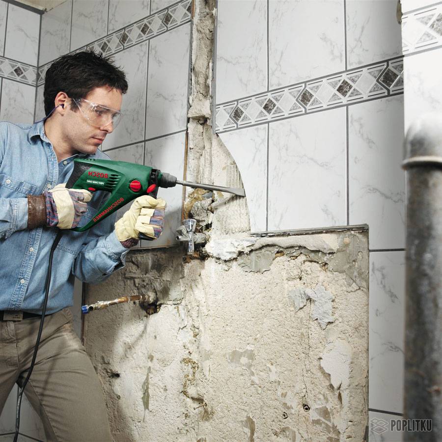 Удаление старой плитки со стен