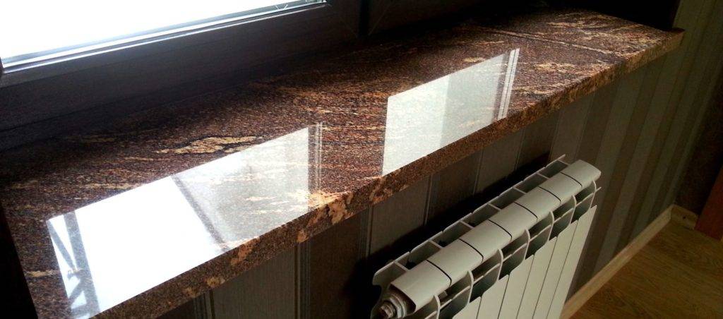 - граниту, устойчивому к разным повреждениям. Подоконники из гранита «впитывают» радиацию, что следует учитывать перед покупкой расходного материала.