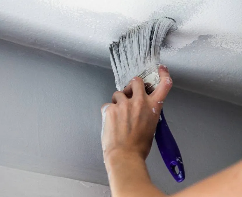 Перед вторичной покраской потолка водоэмульсионной краской нужно разобраться, чем покрыт потолок на момент ремонта. Известку снимают одним способом, для штукатурки и старых красок — свои хитрости.