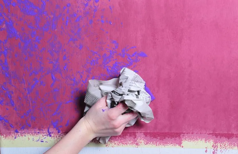 Важно предварительно подготовить цветную основу, после чего подобрать оттенок темнее или светлее. С помощью скомканной газеты получается очень эффектная и примечательная структура
