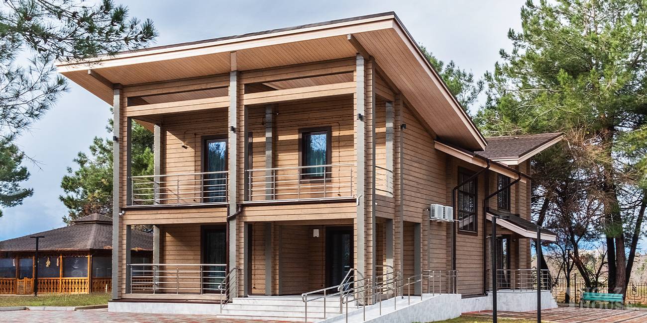 - Клееный брус – материал для дорогого строительства на века. Полное отсутствие усадки, высокая скорость строительства и минимальная отделка – это хорошо, требование в тщательном утеплении – минус. Но если все этапы строительства проведены правильно, такой дом будет самым теплым, надежным и простоит не одну сотню лет.