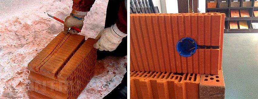 Одна из специфических тонкостей работы с ПКБ — нарезка штроб для прокладки электрики или труб. Распространенная ошибка — штробление перфоратором в ударном режиме, ведущее к сильному крошению пористой стены. Работать следует только штроборезами или УШМ, но лучше выдалбливать каналы вручную — зубилом и молотком, это не намного дольше, но избавит от образования пыли.