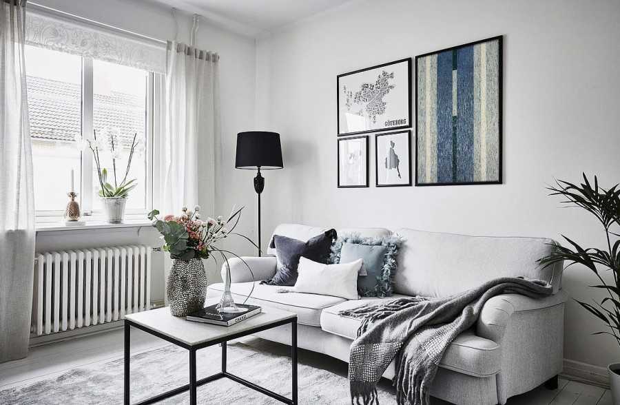 Не заказывайте картины и рисунки, не имея конкретных целей и задач. Придаёте оформлению комнаты некий смысл – разместите чёрно-белые картинки в определенной последовательности. Геометрический контур расскажет гостям о вашей практичности, а романтический пейзаж – визитная карточка фантазии и мечтательности автора идеи.