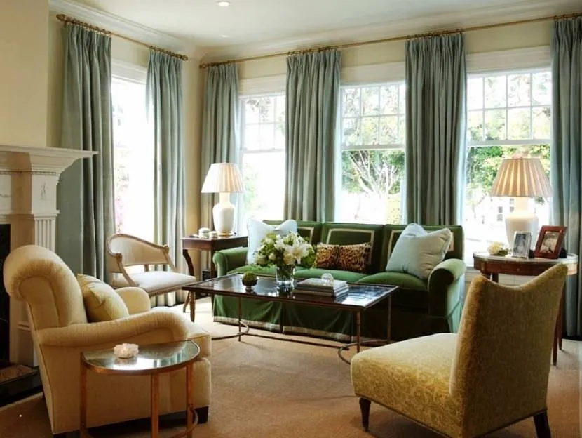 для достижения визуального эффекта большей высоты помещения с использованием длинных занавесок;