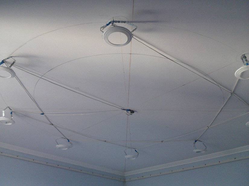 Чтобы зафиксировать светильники, нужно сначала подготовить для них платформы к основному перекрытию, затем развести проводку. Даже у опытного мастера на это уходит время.