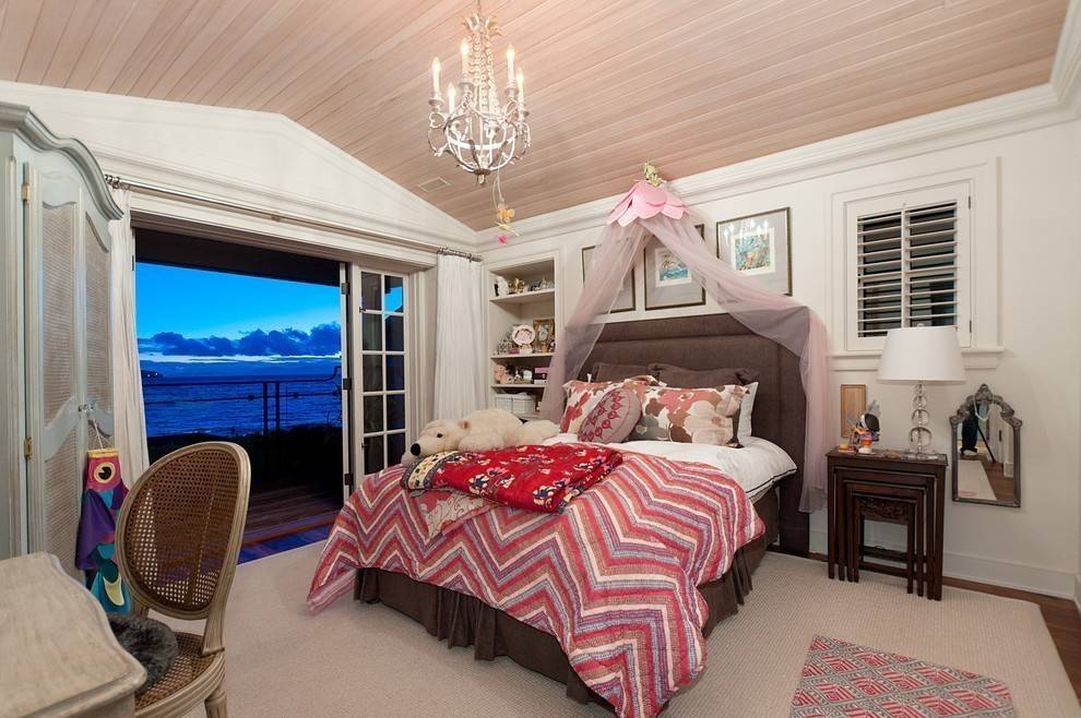 Деревянный реечный потолок выступает в роли благородного и безмятежного дополнения для тропического стиля интерьера детской комнаты